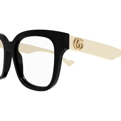 Occhiale da vista Gucci nero e bianco.