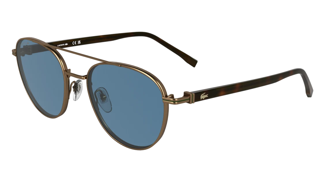 Occhiale da sole Lacoste in metallo amber gold e tartarugato.