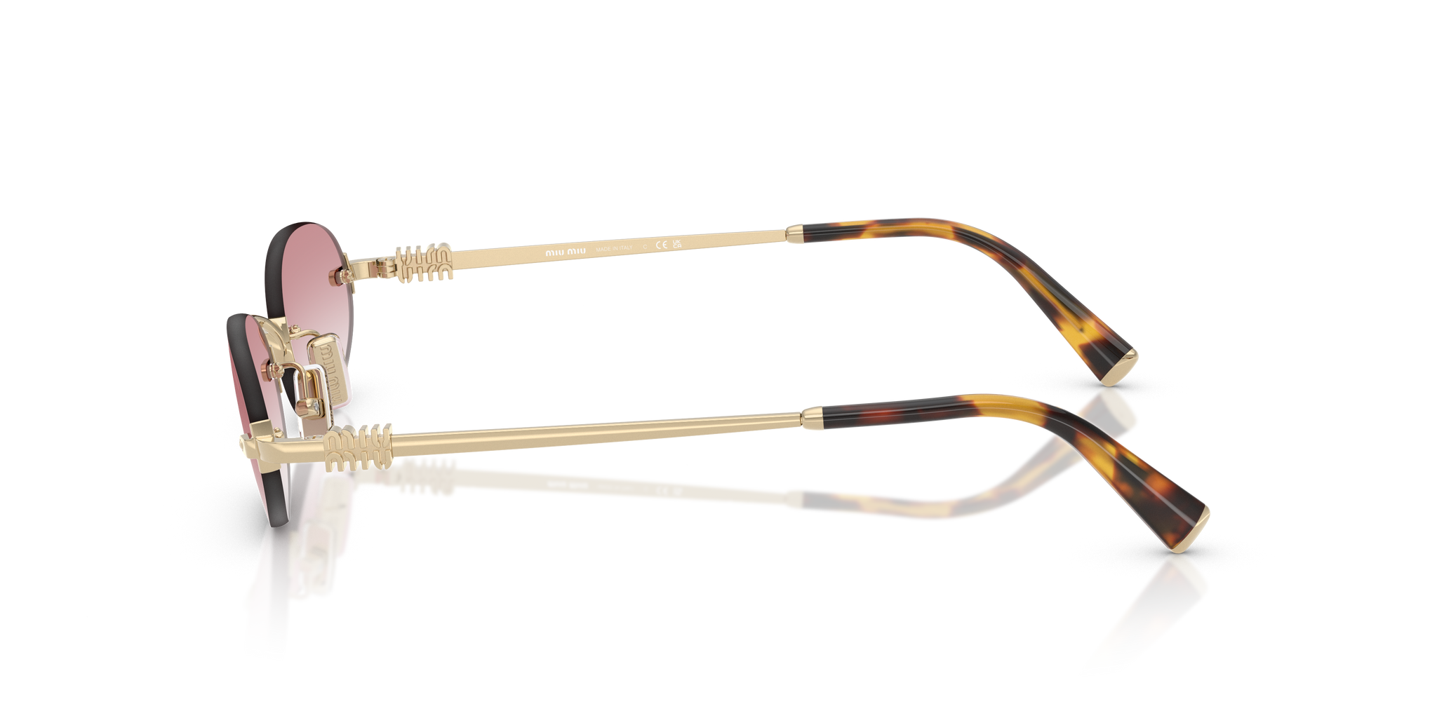Occhiale da sole Miu Miu in metallo oro pallido.
