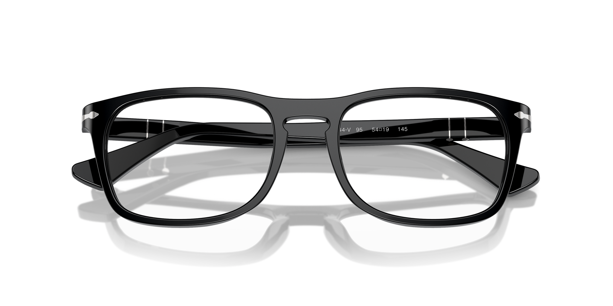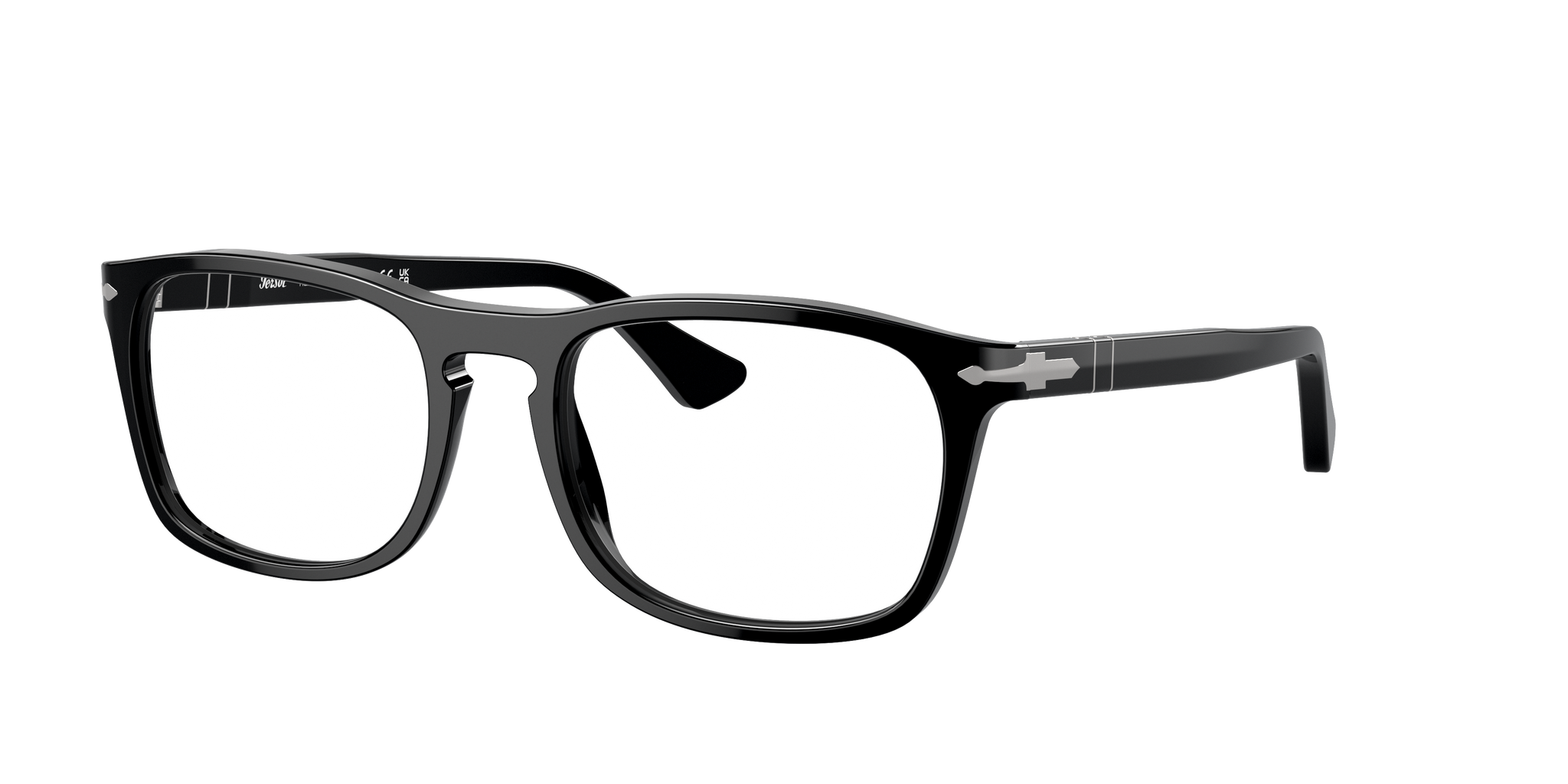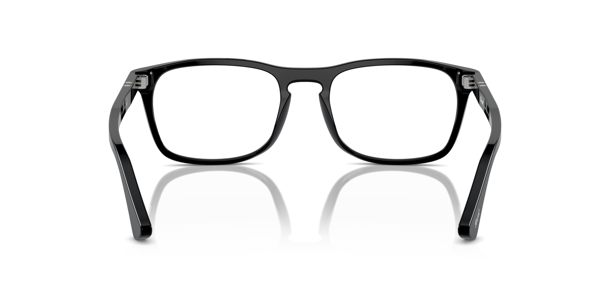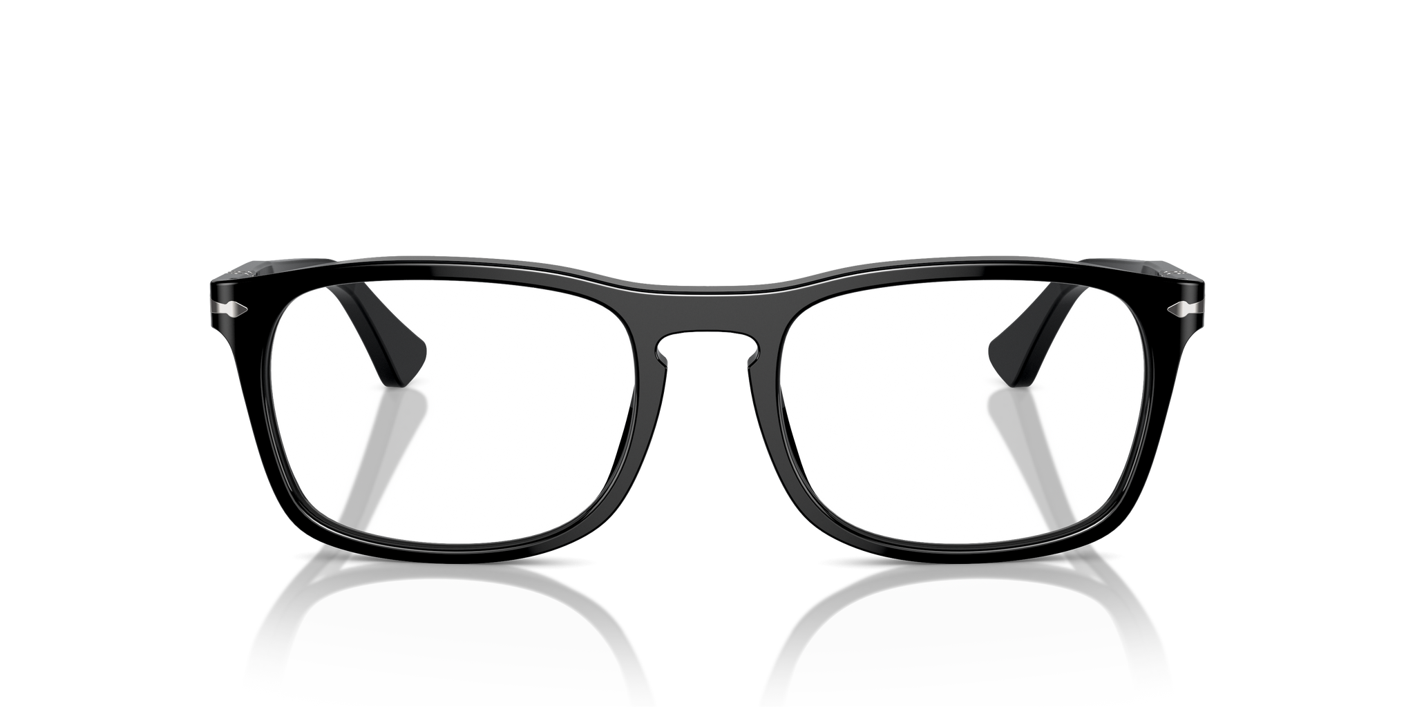 Occhiale da vista Persol in acetato nero lucido.