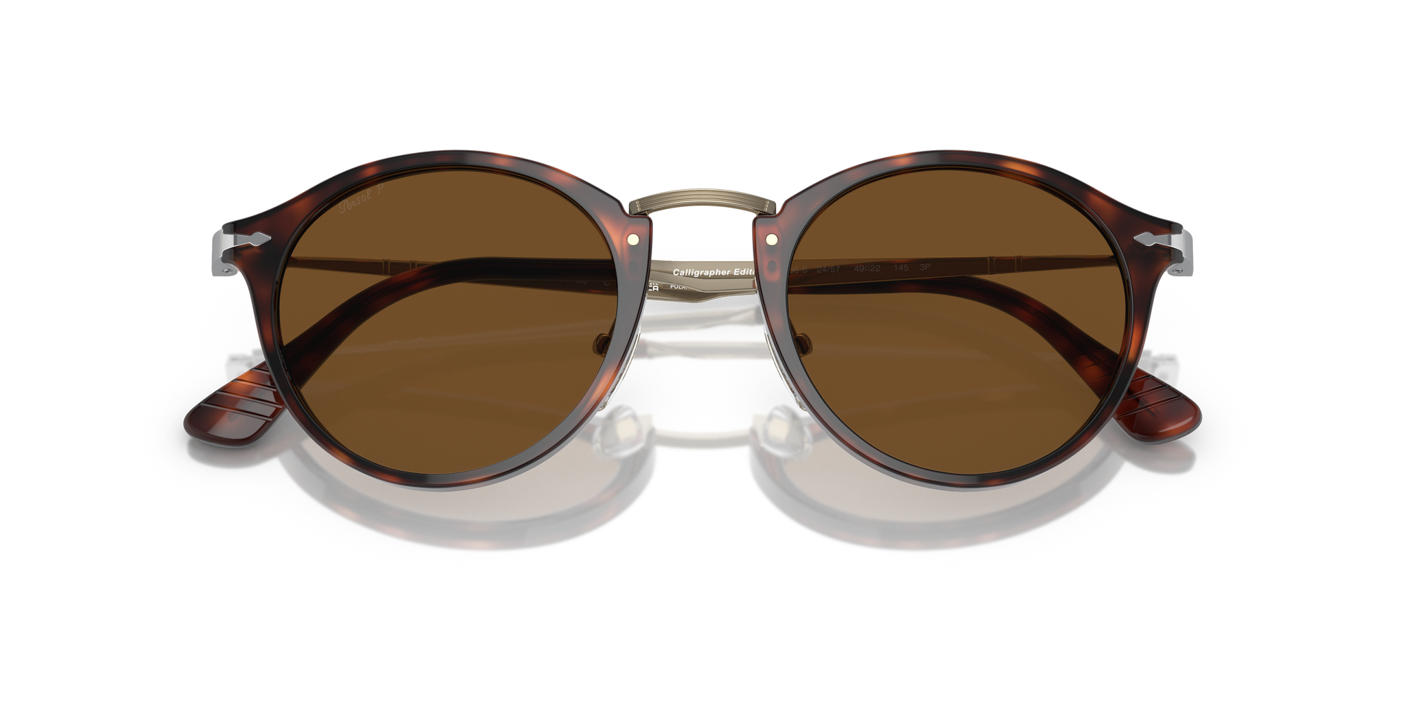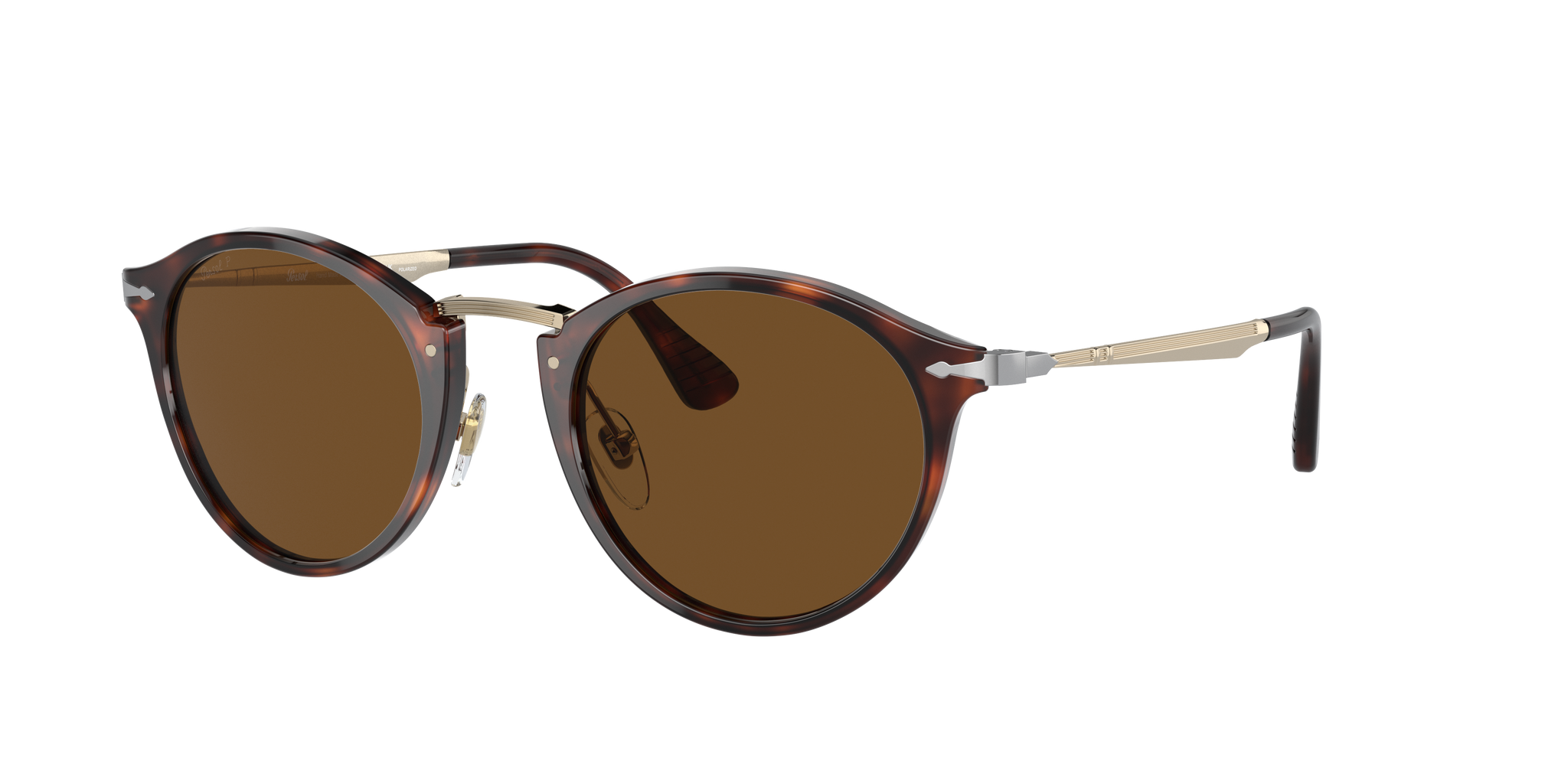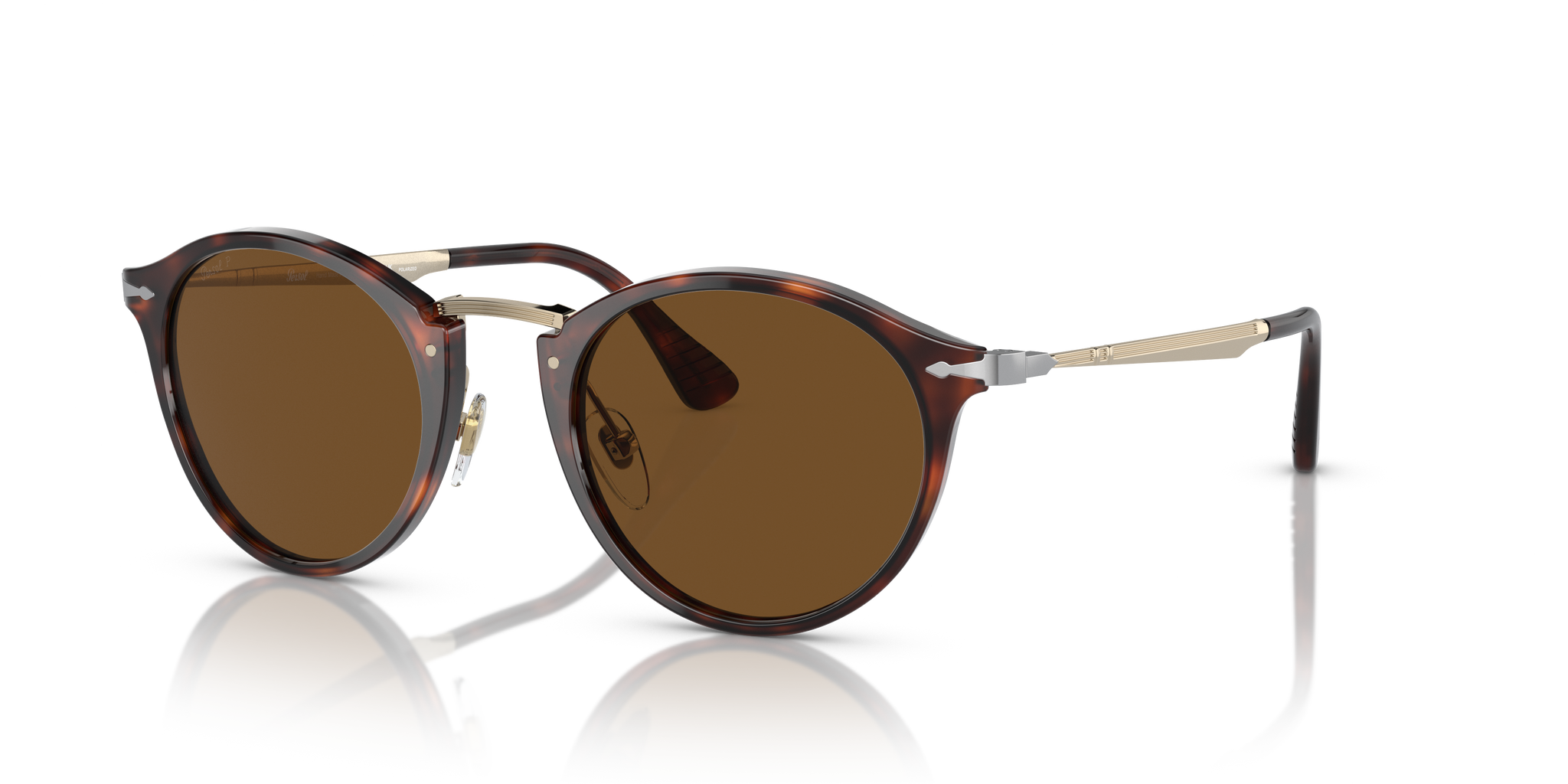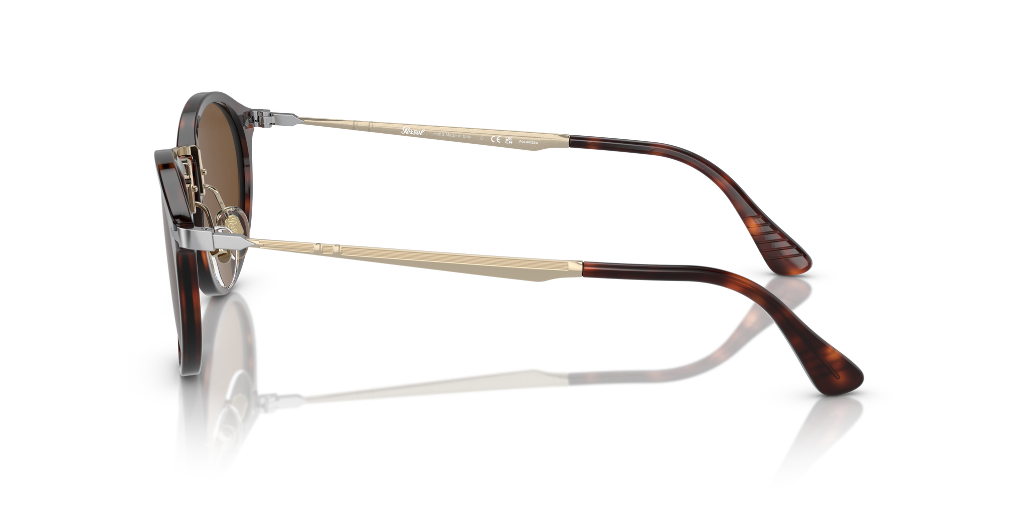 Occhiale da sole Persol in acetato havana e metallo oro.