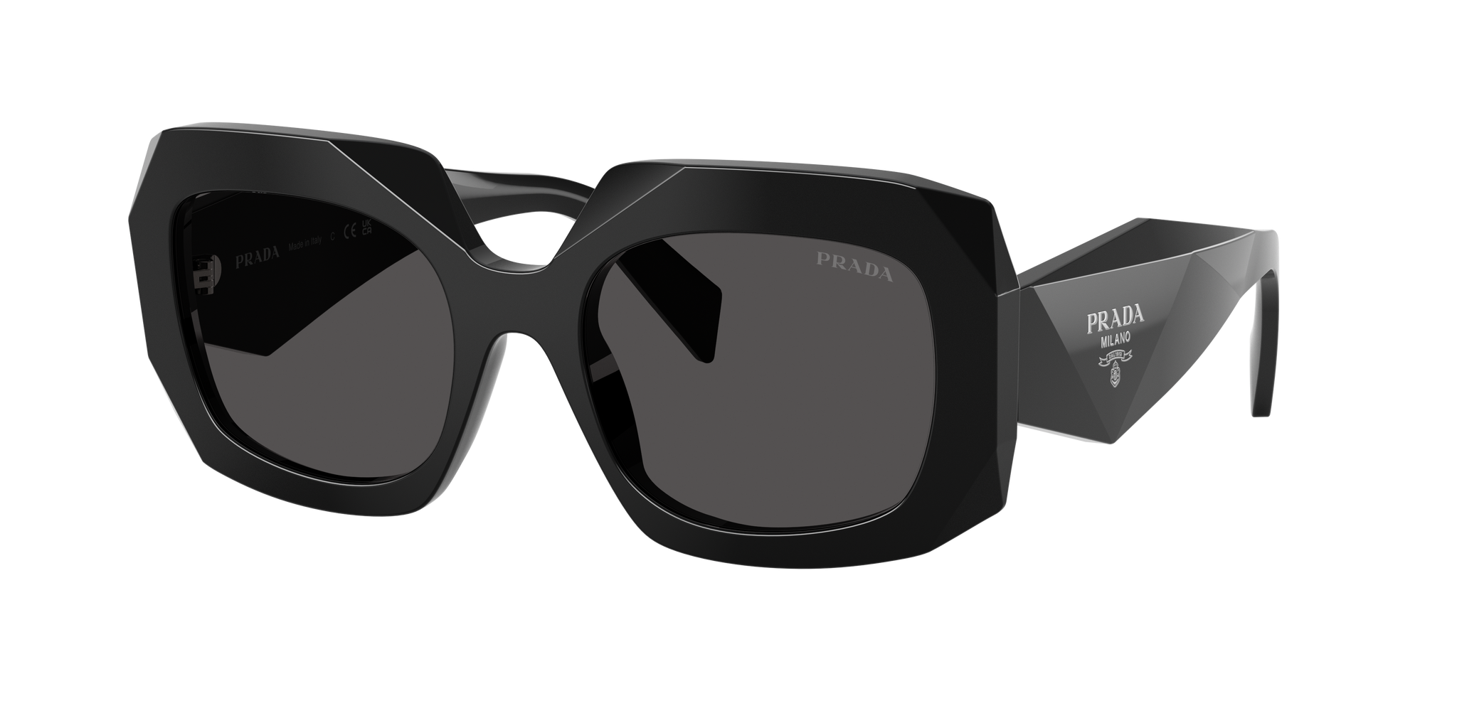 Occhiale da sole Prada in acetato nero.