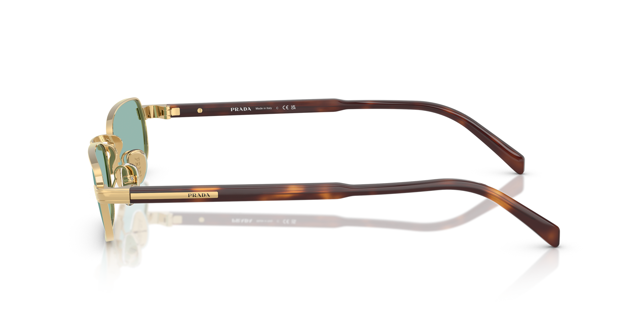Occhiale da sole Prada in metallo oro e tartarugato.