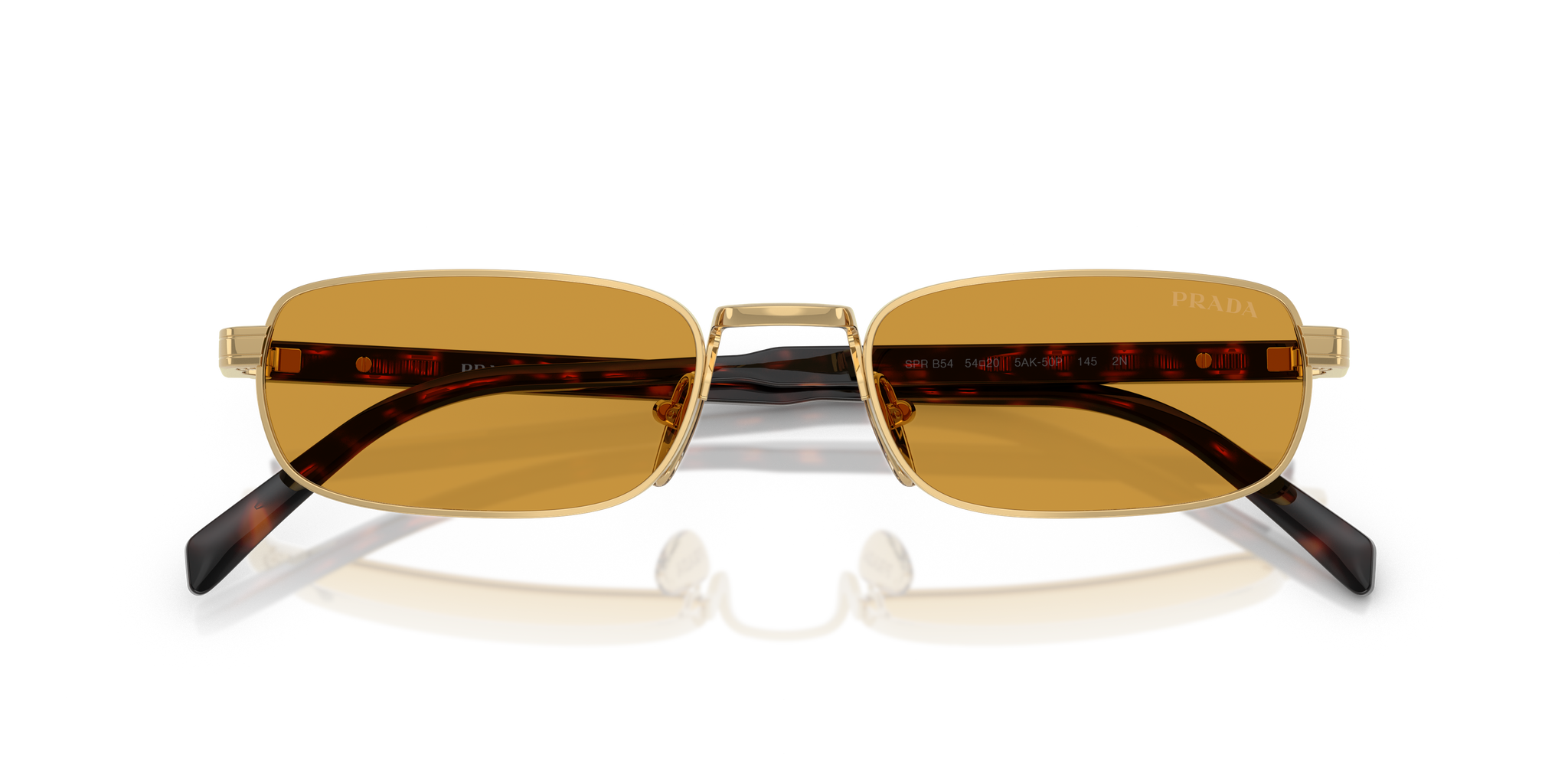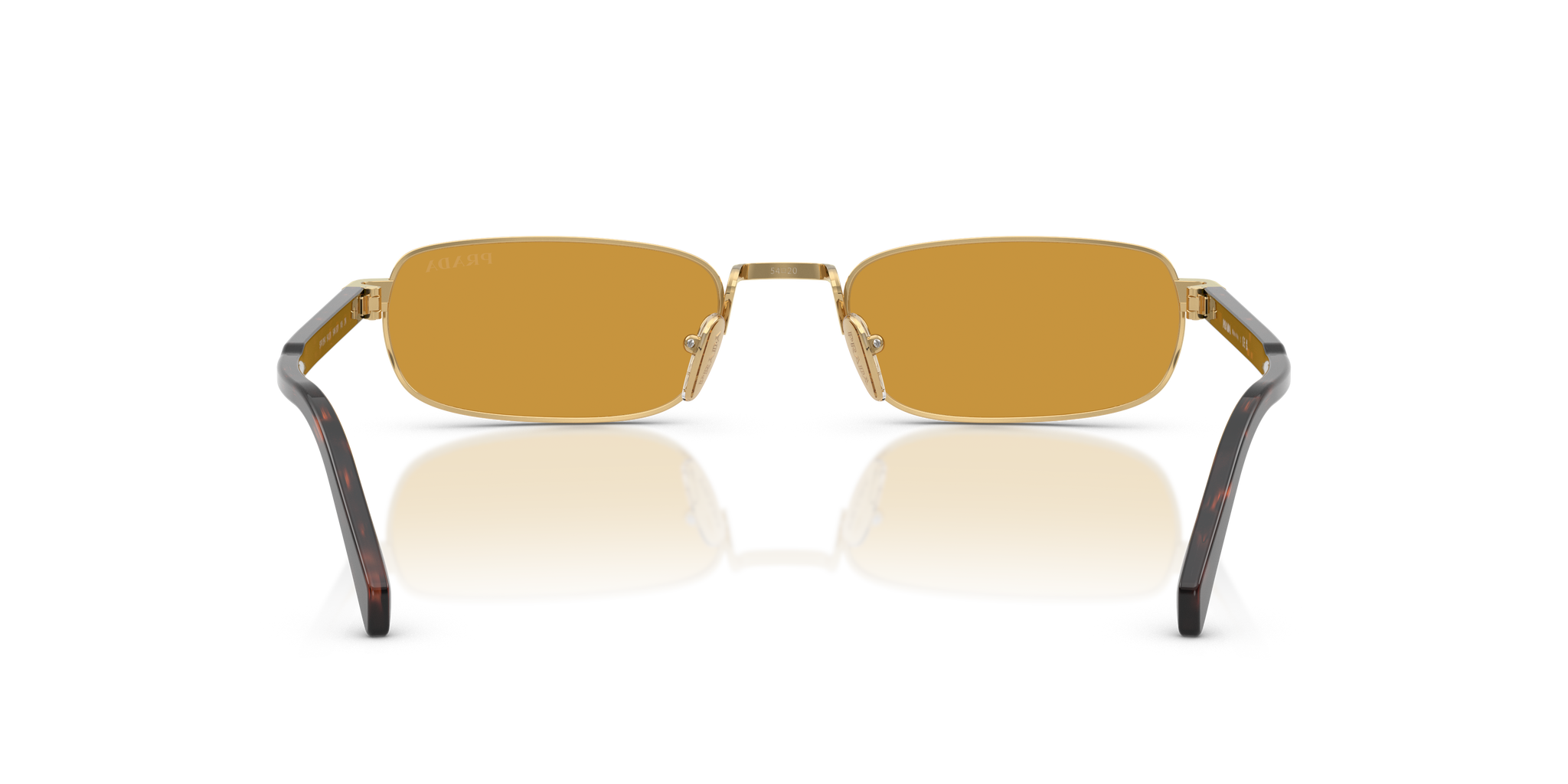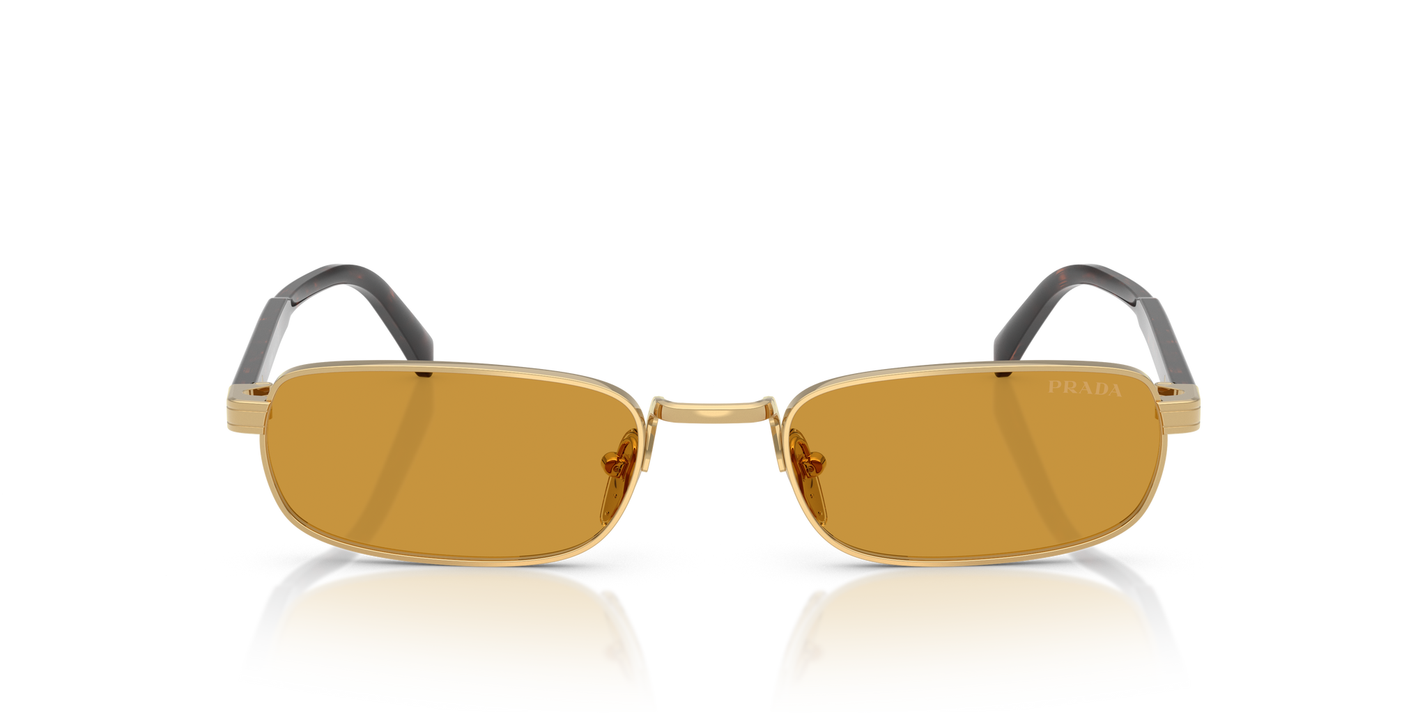 Occhiale da sole Prada in metallo oro e tartarugato.