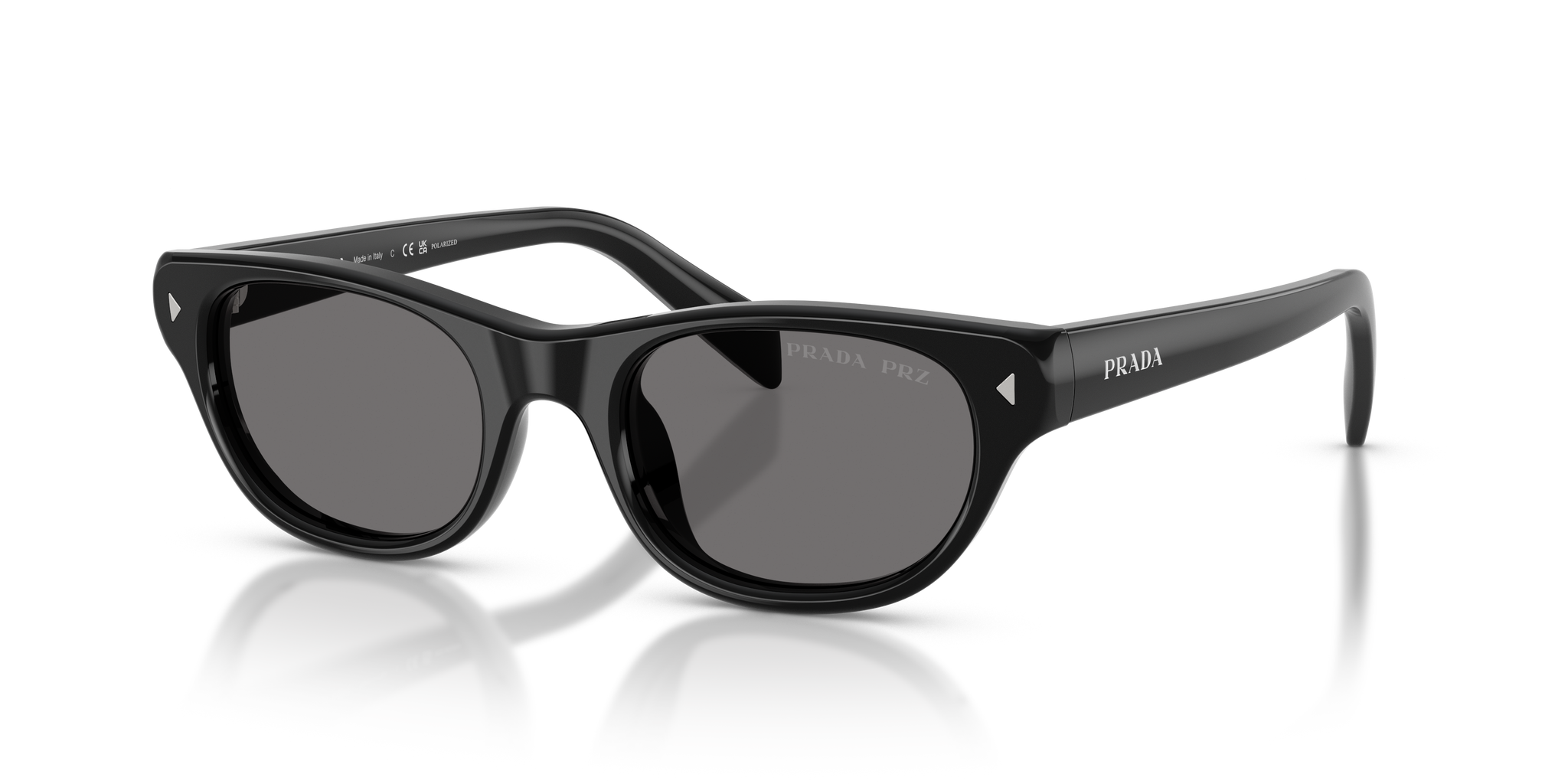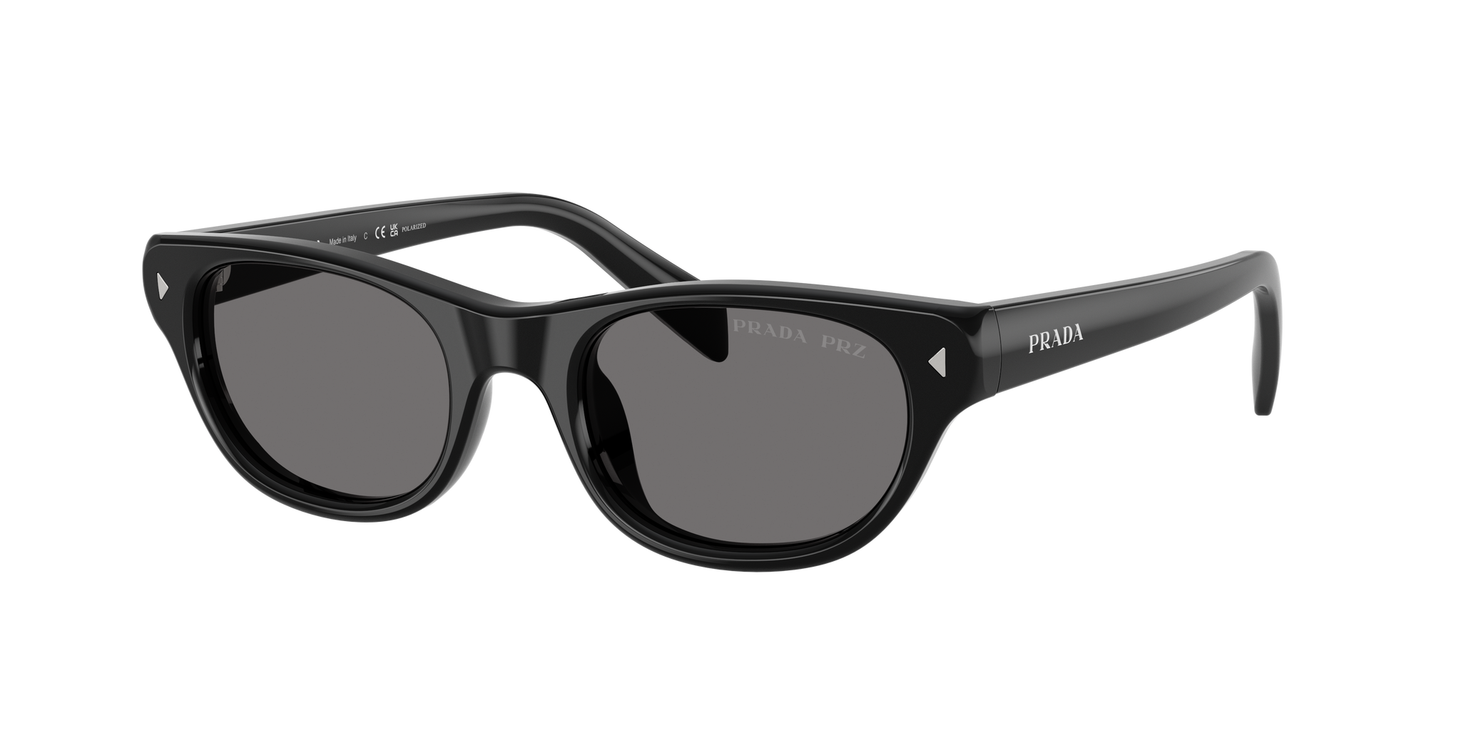 Occhiale da sole Prada in acetato nero lucido.