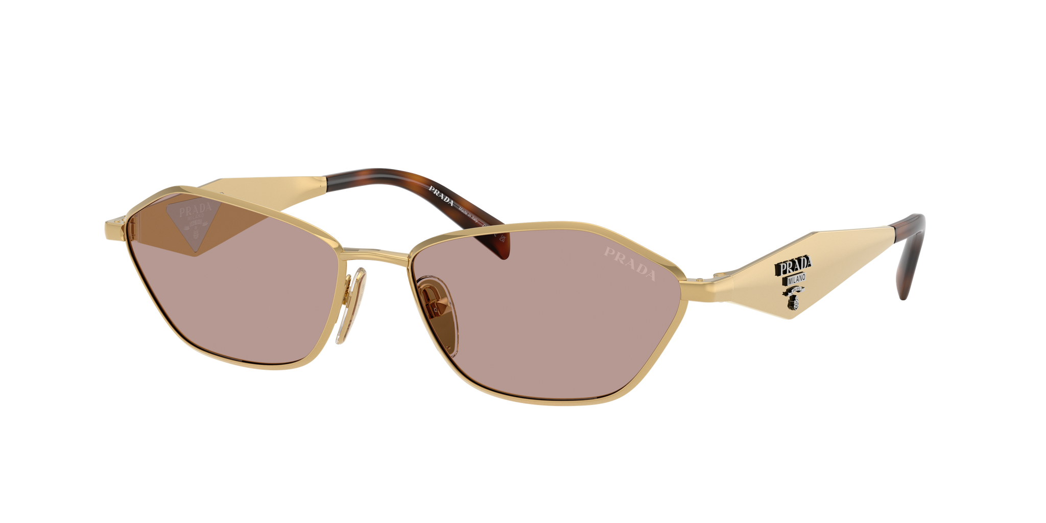 Occhiale da sole Prada in metallo oro.