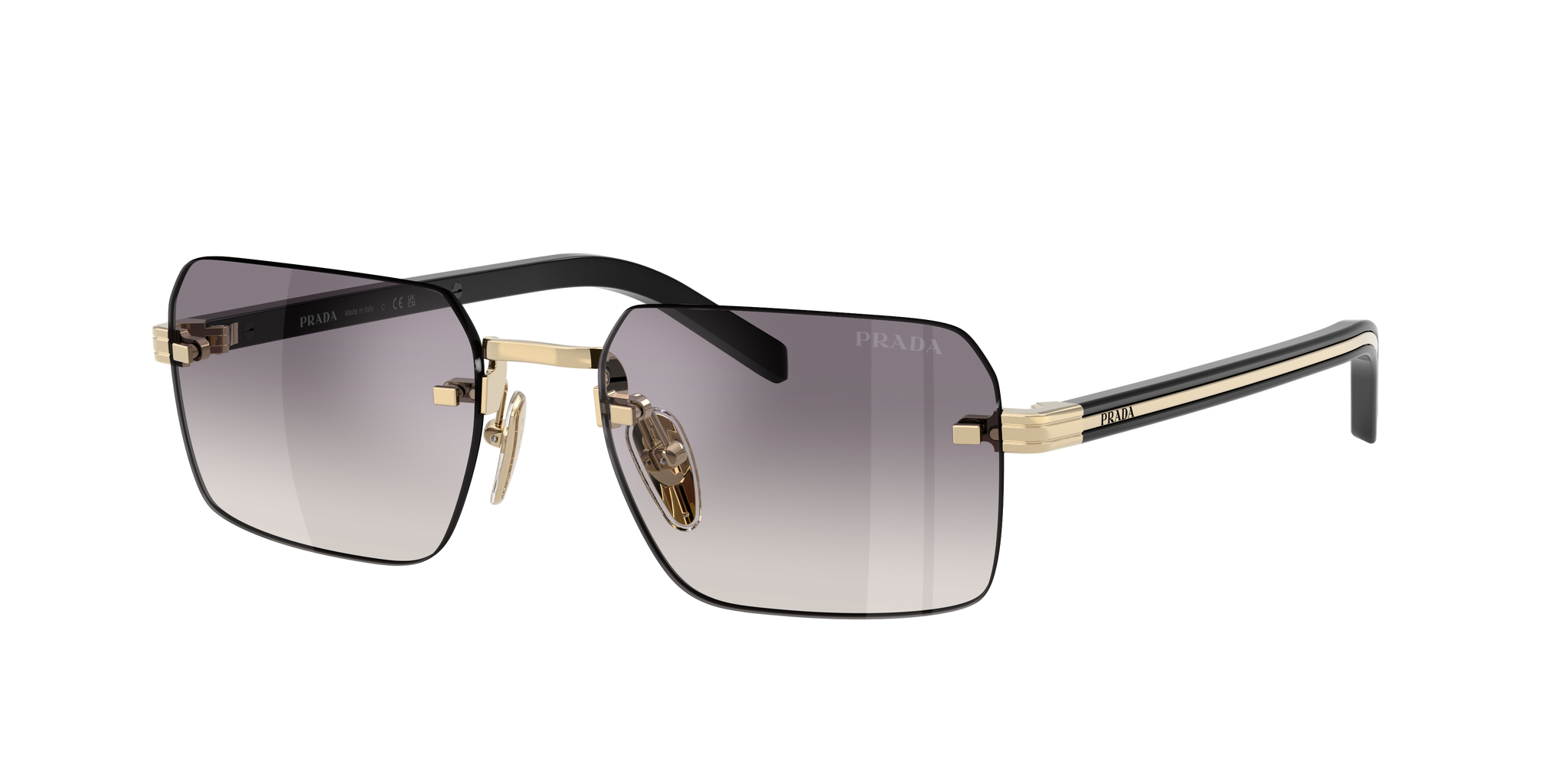 Occhiale da sole Prada in metallo oro pallido.
