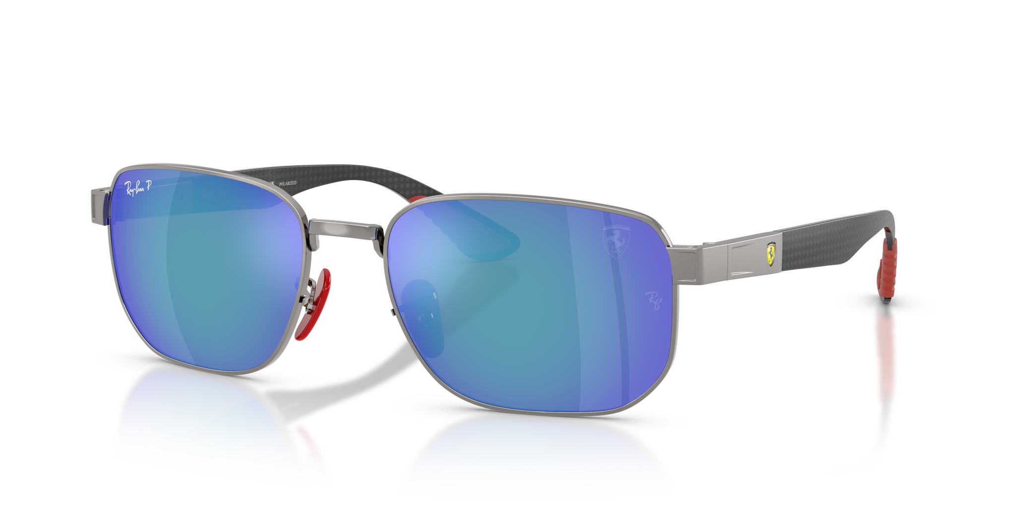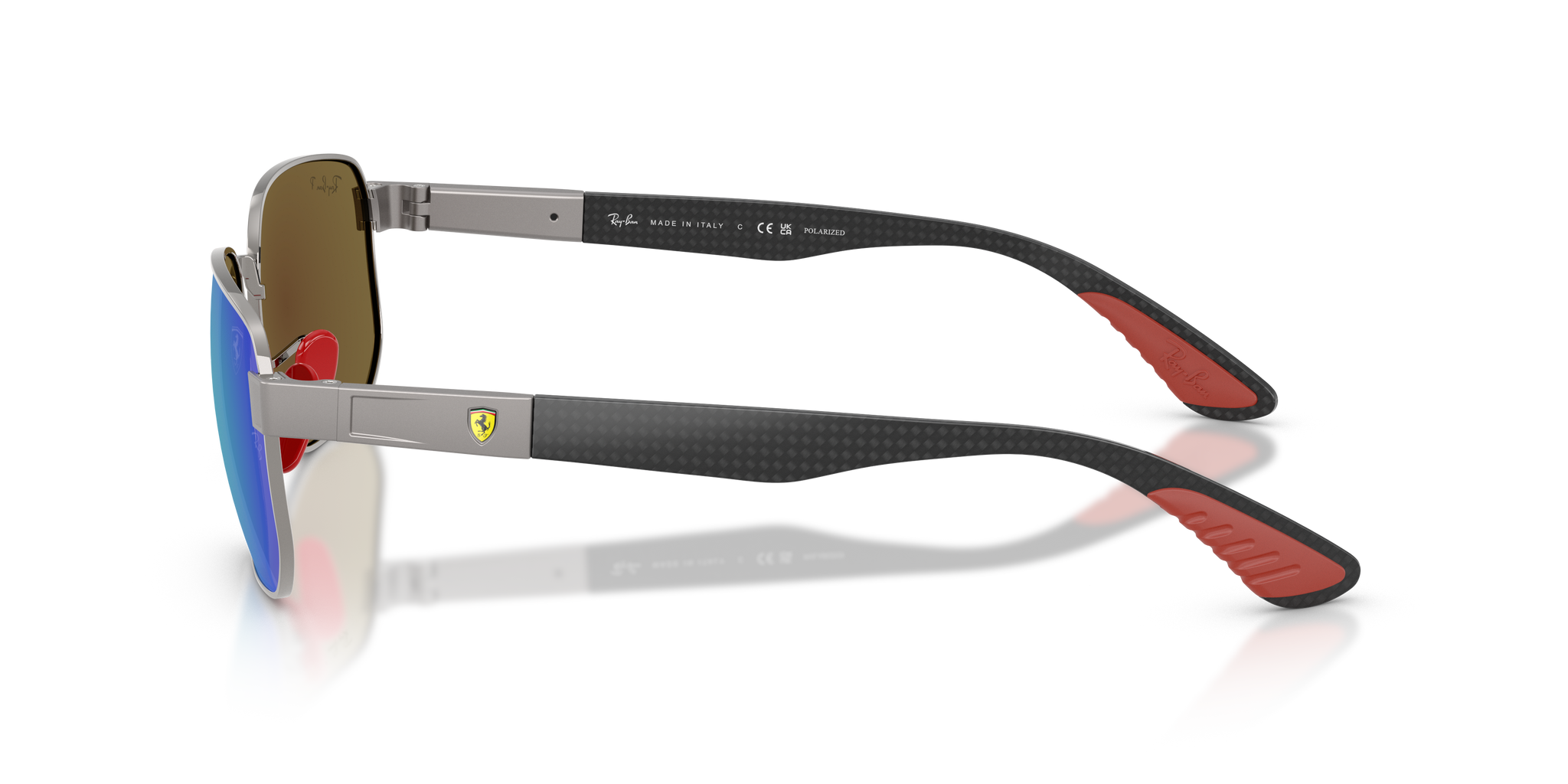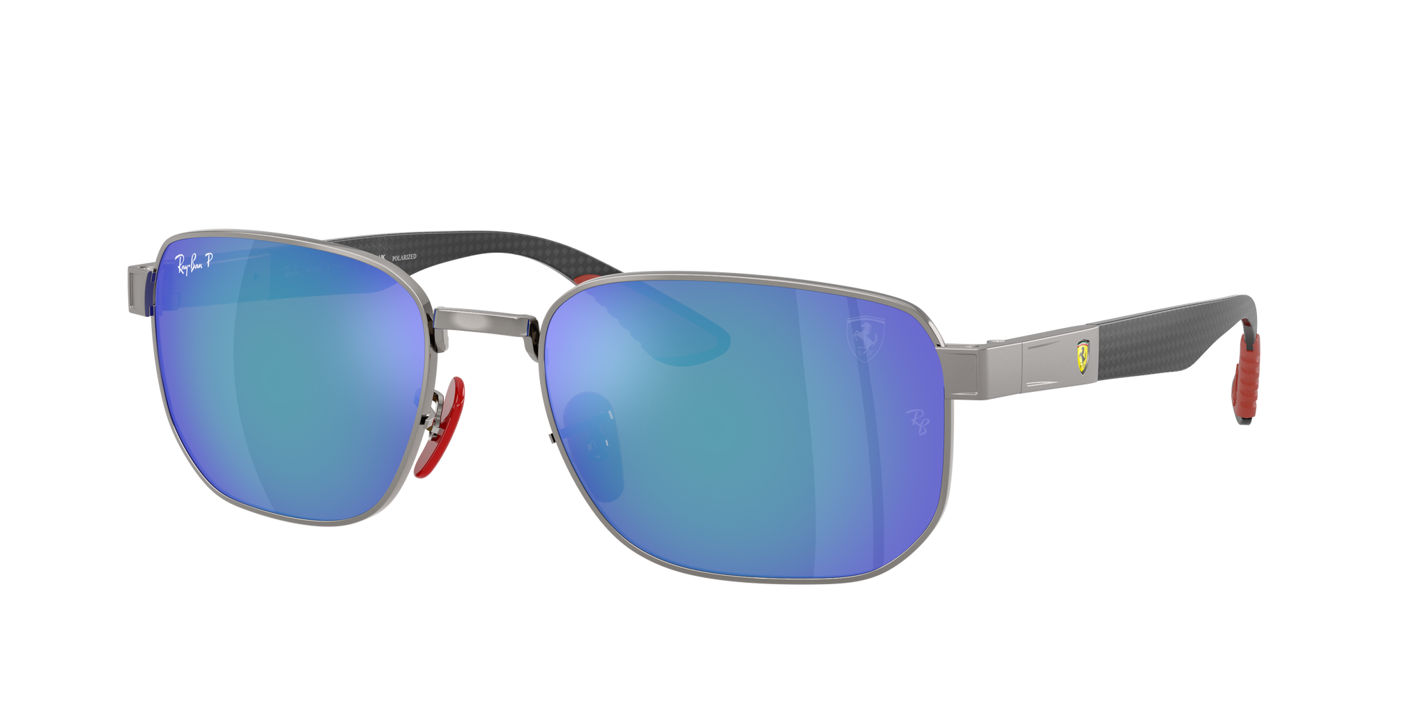 Occhiale da sole Ray Ban x Ferrari in metallo gunmetal lucido.