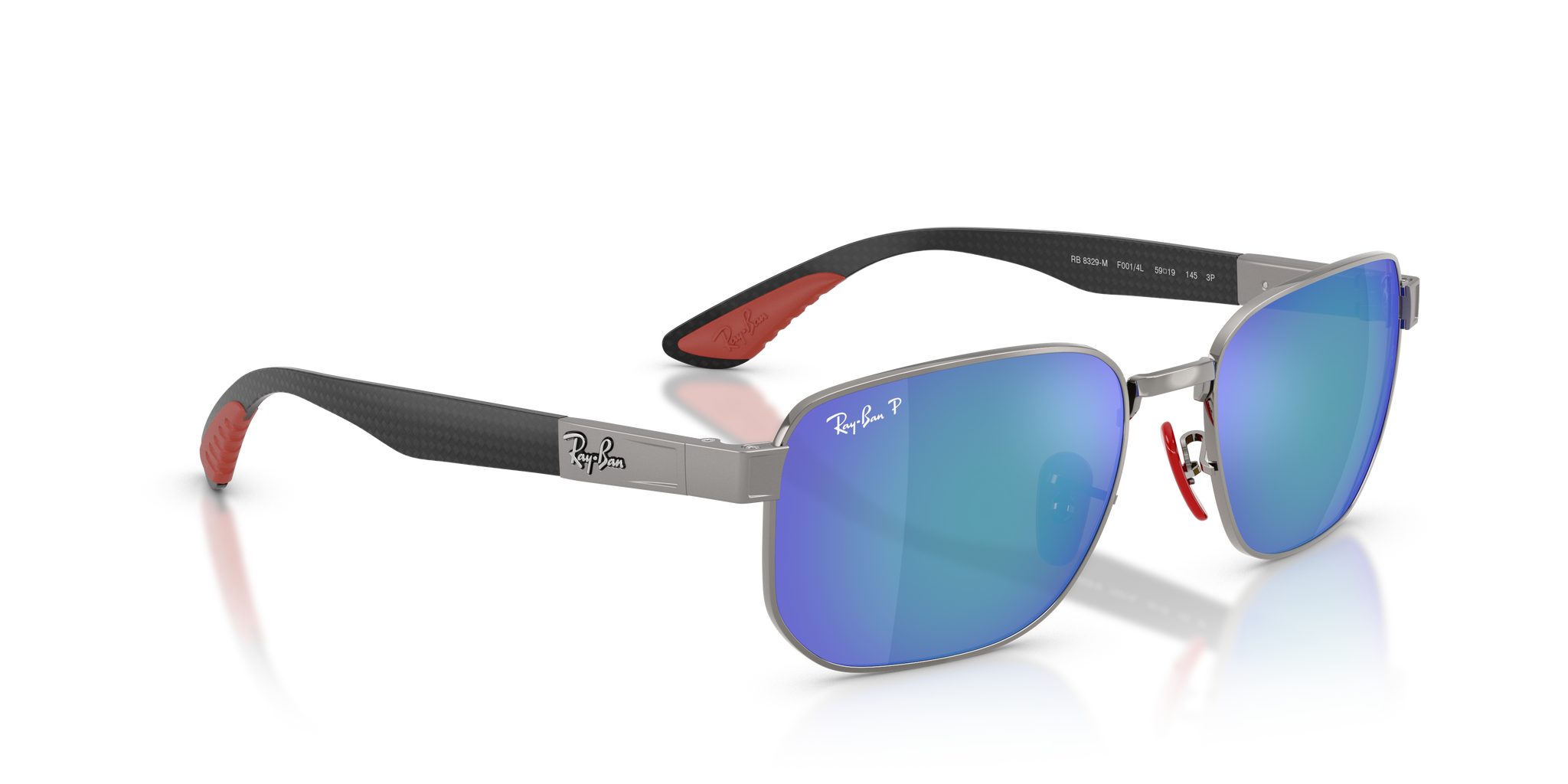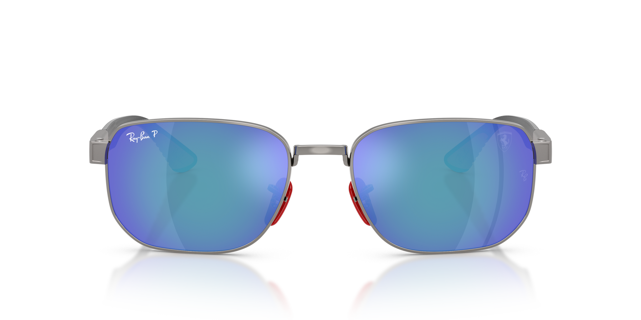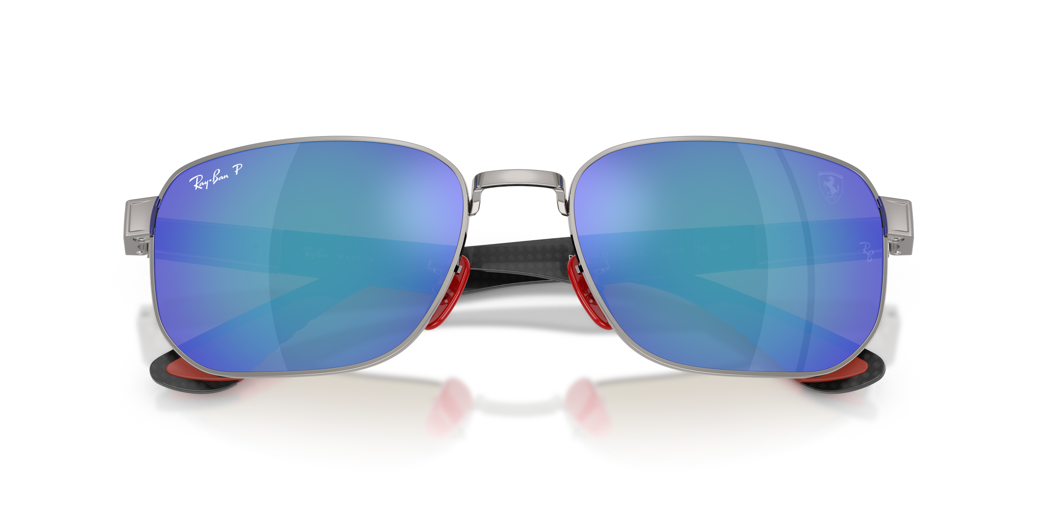 Occhiale da sole Ray Ban x Ferrari in metallo gunmetal lucido.