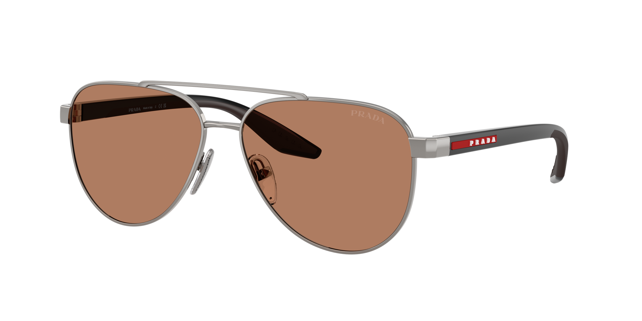 Occhiale da sole Prada Linea Rossa in metallo gunmetal.